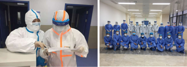 湖北民族大学附属民大医院血液净化室CRRT小组姚兰护士积极参与隔离病房相关工作。根据医院部署,姚兰护士负责为1例糖尿病肾病V期合并新冠肺炎的重症确诊患者开展CRRT。她做好防护准备后,仔细与交班护士对接患者病情,包括基本生命体征的变化、患者的意识情况、医生的治疗方案、CRRT前后各时段血气分析的对比情况以及机器滤前压、跨膜压等各方面压力的变化情况,超滤量、置换量等数据。交接班后从21点30分到凌晨3点30分,这6小时里2次更换推泵,2次更换废液袋,3次配置置换液并更换,9次更换药物,6次记录数据,4次处理机器报警,根据血压以及动脉血气分析调节超滤量和药物输注速度,维持患者血压及体内酸碱平衡,为患者的后续治疗提供了有利条件。
